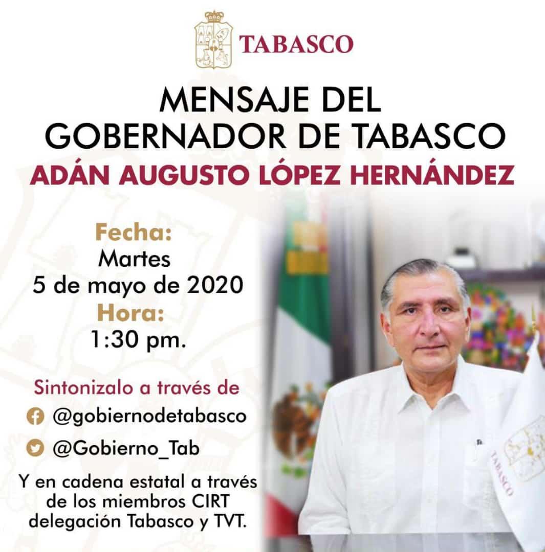 Gobierno De Tabasco On Twitter Este Martes 5 De Mayo A Las 13 30 H El Gobernador De Tabasco Adan Augusto Lopez Hernandez Emitira Un Mensaje En Cadena Estatal A La Ciudadania De